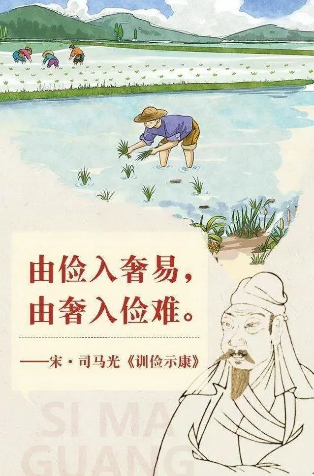 “由俭入奢易,由奢入俭难。”的意思是由节俭进入奢侈很容易,由奢侈进入节俭就困难了。这句话出自北宋政治家、史学家、文学家司马光的《训俭示康》。