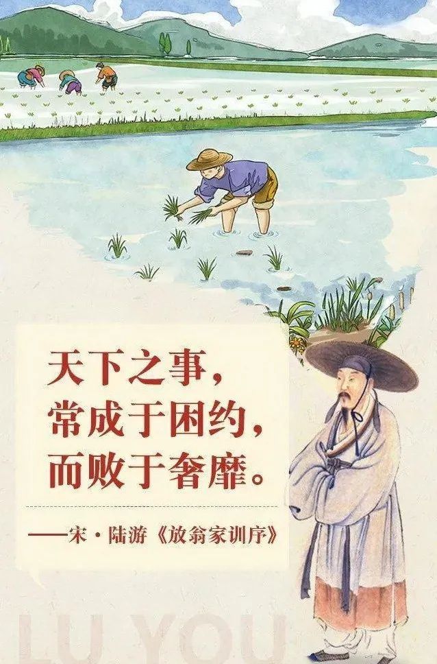 在中国漫长的农耕文明史中,惜食节俭成为流淌在中国人血脉中的传统与习惯,古人们留下了许多关于倡俭戒奢的诗词名句,提倡节俭。如今,虽然不再缺衣少食,但土地能承载和产出的资源始终有限,“厉行节约、反对浪费”的传统不能忘、不能丢。让我们重温这些诗词名句,感受和传承中华节俭美德。
