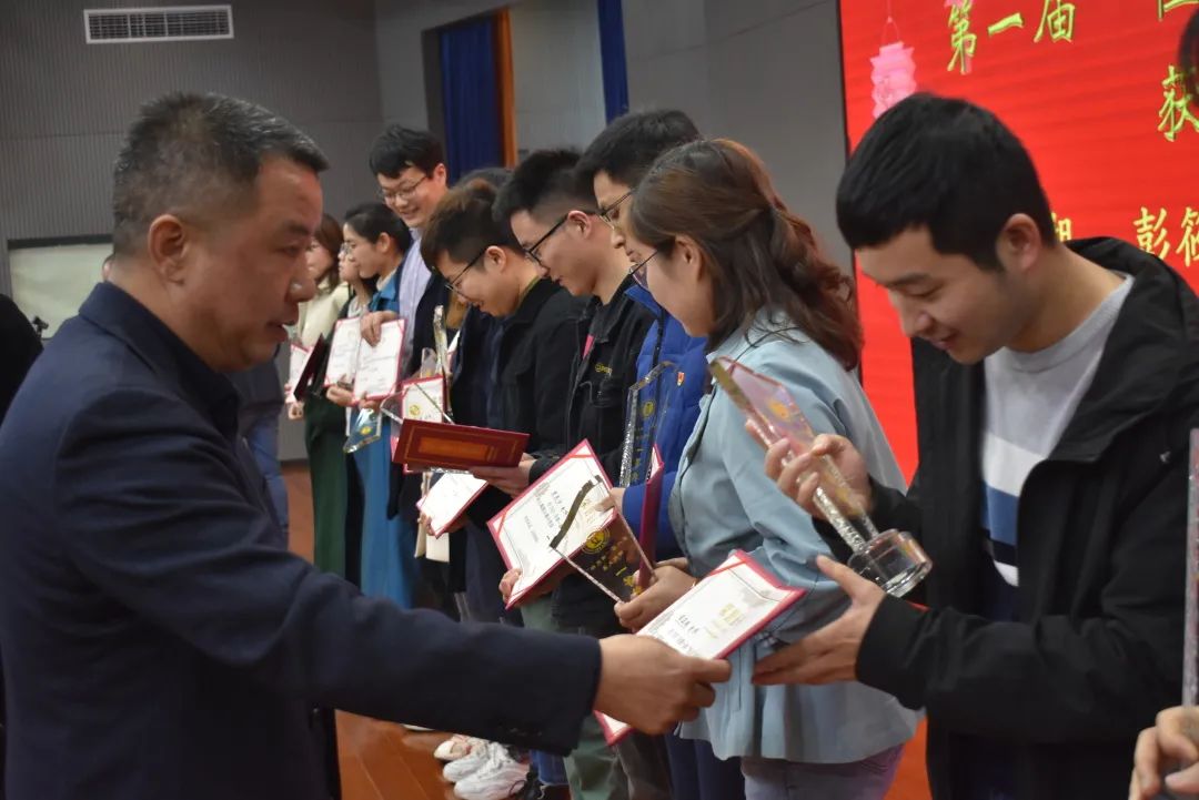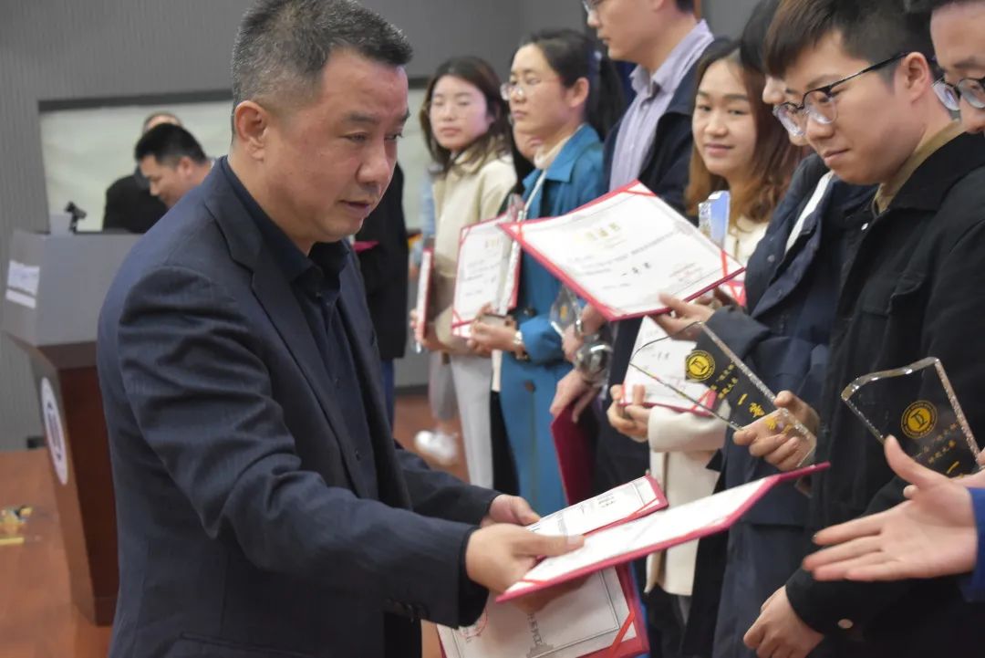 校长蒋明权、校长助理易戆如为获奖老师颁奖。