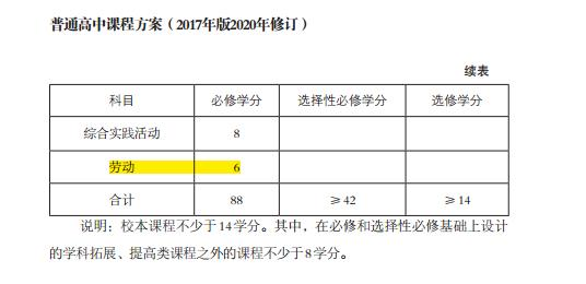 近日,教育部对外公布普通高中课程方案和语文等学科课程标准(2017年版2020年修订),方案显示,今后,普通高中应在原来科目基础上开设劳动课程,共6个学分,为必修学分。